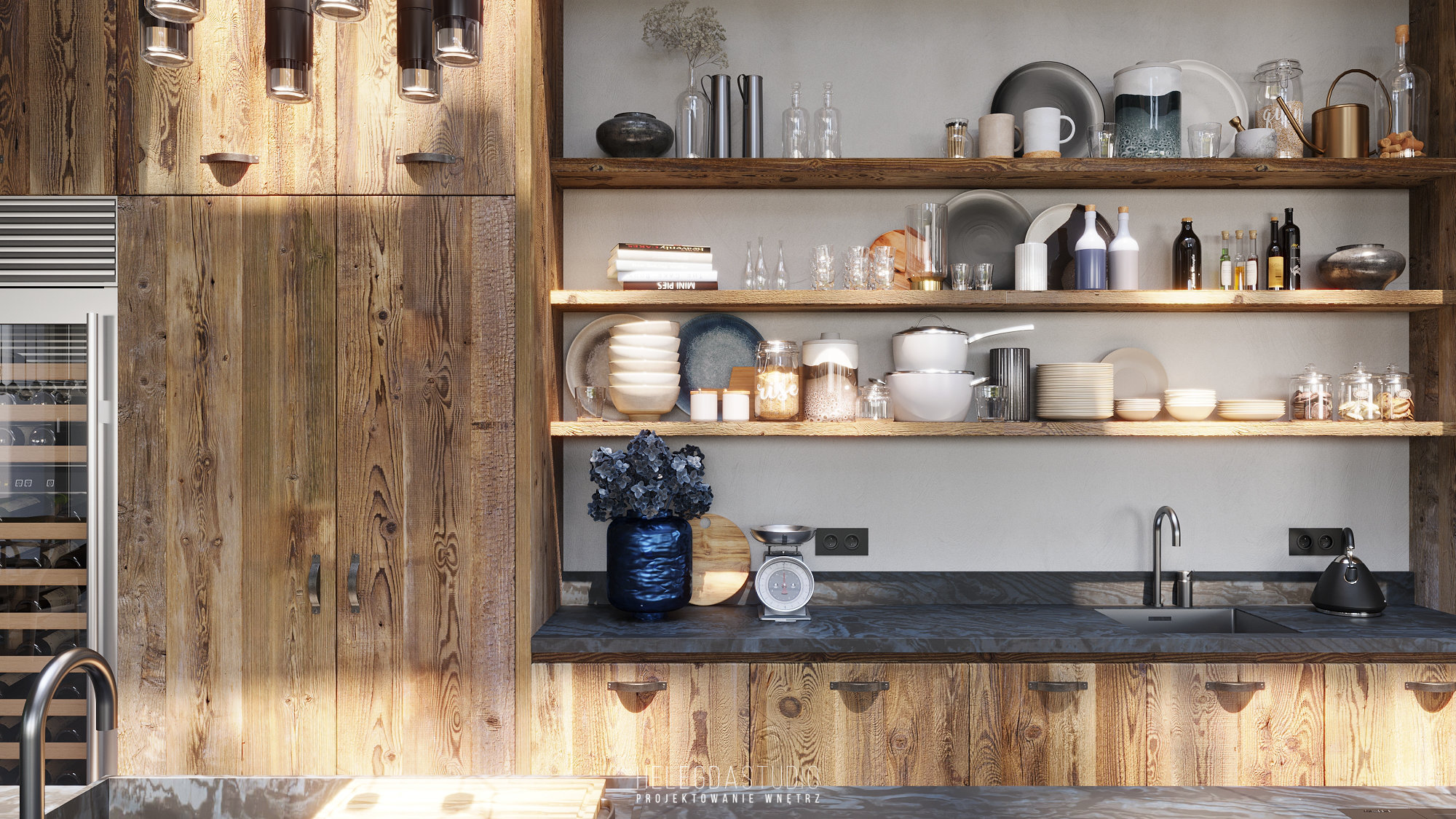 Projekt kuchni ze starego drewna marki Regalia Polska Manufaktura